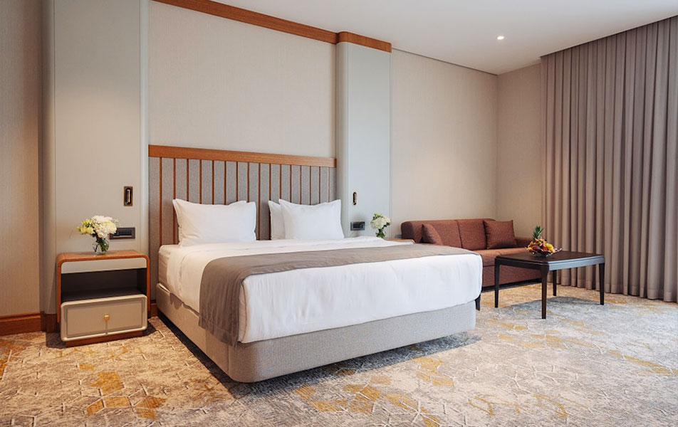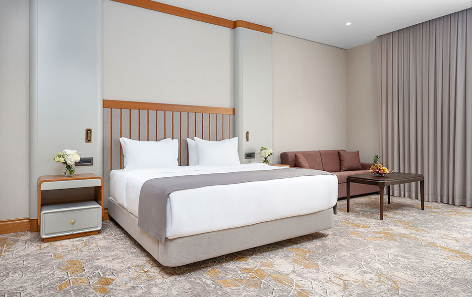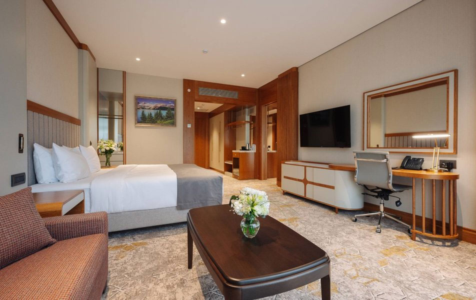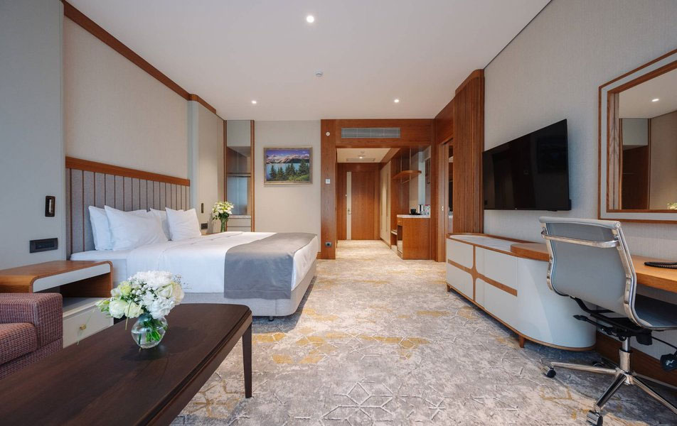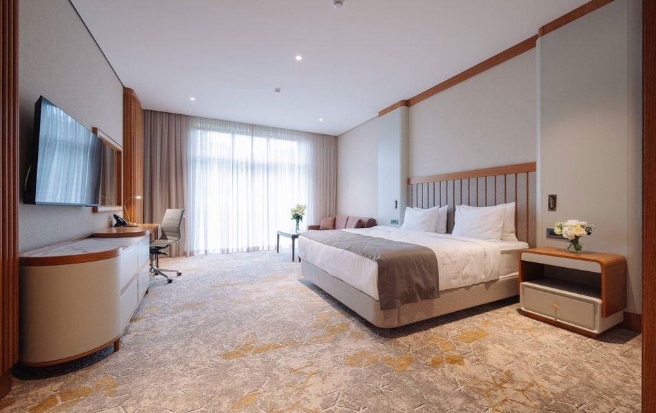 Эксклюзивный двухкомнатный номер повышенной комфортности категории «Люкс» площадью 84 м² — это безупречное пространство для тех, кто привык к самому высокому уровню приватности и сервиса.